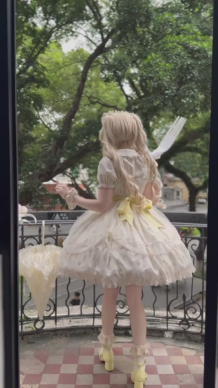 Bunny Tea Party Lolita Dress with Blouse (Cream & Butter Yellow)