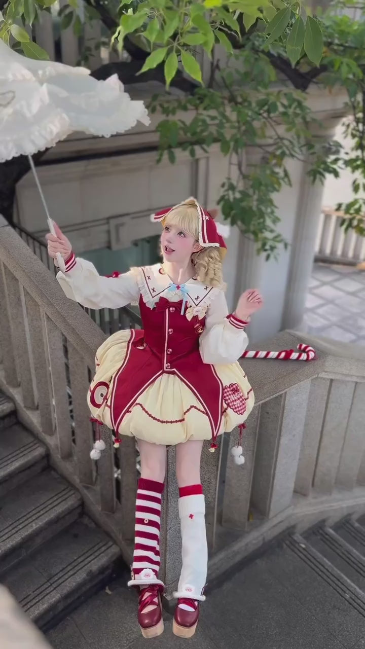 — Styling Tips: Pair this dress with striped socks, platform shoes, and a coordinating candy-stripe accessory to enhance its whimsical charm. Add a small parasol, themed bag, or holiday ribbon for the full “storybook doll” fantasy. Perfect for seasonal events, themed photoshoots, cafés, or festive gatherings.