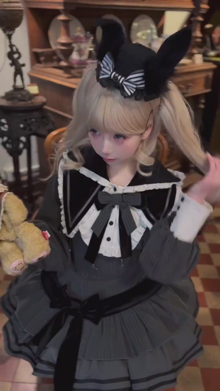 Step into an enchanting world of dark academia and doll-like charm with the Gothic Bunny Scholar Lolita Dress (Charcoal Gray & Black) — a whimsical fusion of vintage schoolgirl refinement and gothic fantasy. Perfect for admirers of elegant darkness, this piece evokes the image of a porcelain doll wandering through candlelit corridors under a moonlit sky.
