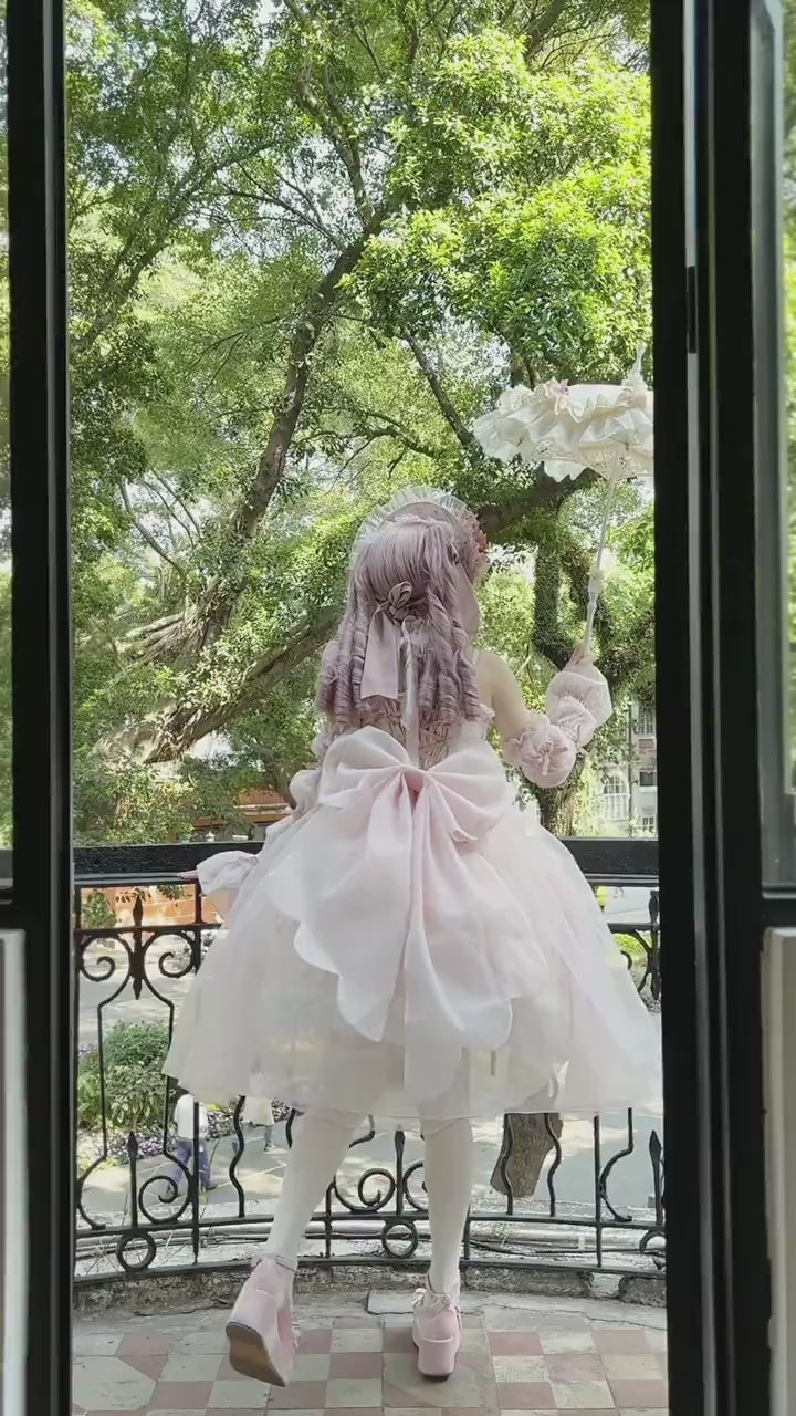 The back of the dress has an elastic panel and lacing for enhanced comfort and flexibility, allowing for a flattering fit across multiple sizes. This dress is perfect for Lolita fashion enthusiasts seeking a classic Rococo-inspired look with a touch of fairy-tale fantasy. Available in dreamy pastel shades, it is designed to captivate attention at tea parties, Lolita gatherings, or any special occasion.