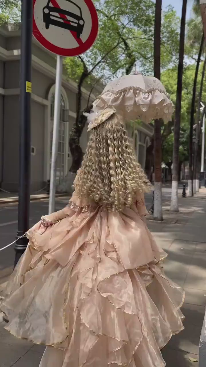 Step into a world of baroque splendor with the Gilded Royal Elegance OP Set (Beige Gold) — a majestic creation inspired by opulent court fashion and the ethereal beauty of classical princess gowns. Bathed in shimmering beige-gold tones, this dress evokes the grandeur of a royal ballroom, inviting you into a fairytale realm of luxury and timeless romance.