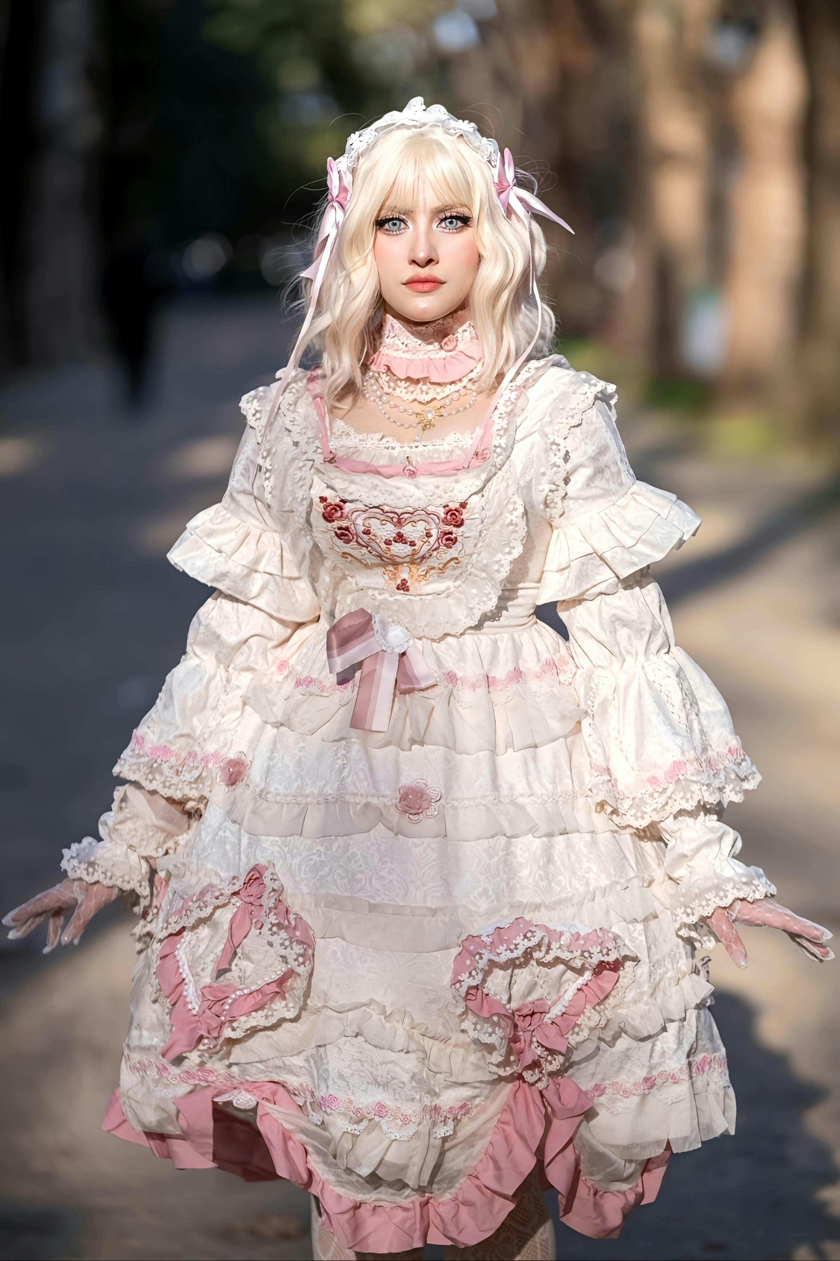 Styling Tips: Complete your Rococo fantasy with a matching bonnet adorned with roses and lace, pearl jewelry, and pastel heels. Pair with a lace parasol for an aristocratic flourish. Ideal for tea parties, themed photoshoots, or Lolita fashion events, this dress radiates the timeless allure of 18th-century elegance infused with the sweetness of modern Lolita romance.