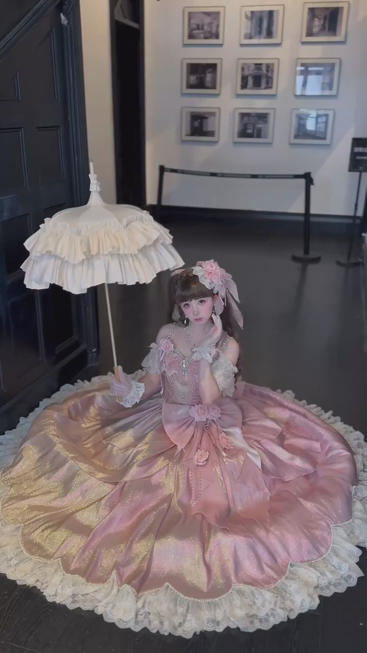 Pair this gown with a pearl choker, lace gloves, and a satin parasol for a regal look reminiscent of Rococo courtly fashion. Add a floral headpiece or soft curls adorned with ribbons to complete the ensemble — perfect for elegant balls, Lolita soirées, or fairytale-inspired occasions where every moment feels like a portrait from another era.